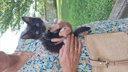 Udomljena crno bijela maca. Nađena u Folnegovicevom naselju.