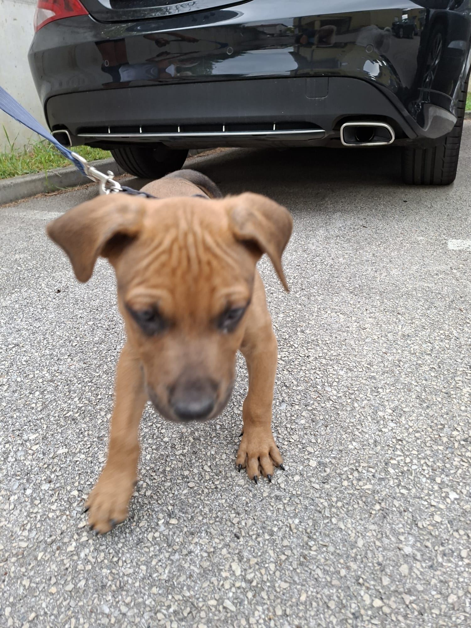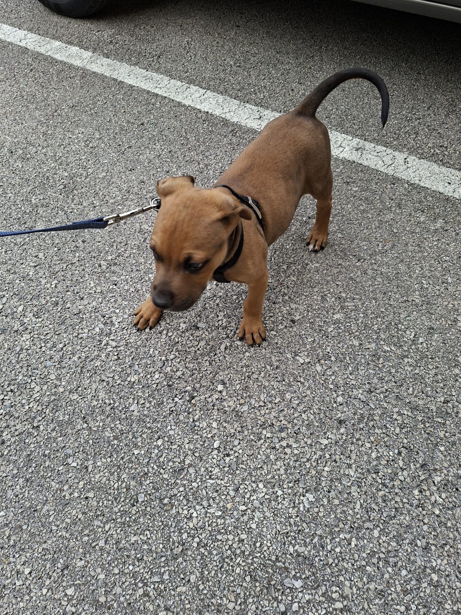 Pas štene, udomljen od štanceraja, te nakon par dana najvjerojatnije izbačen. Nema čip.