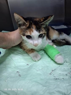 Mačka djeluje ozlijeđeno, nađena na cesti i od vezana na veterinarski fakultet.
