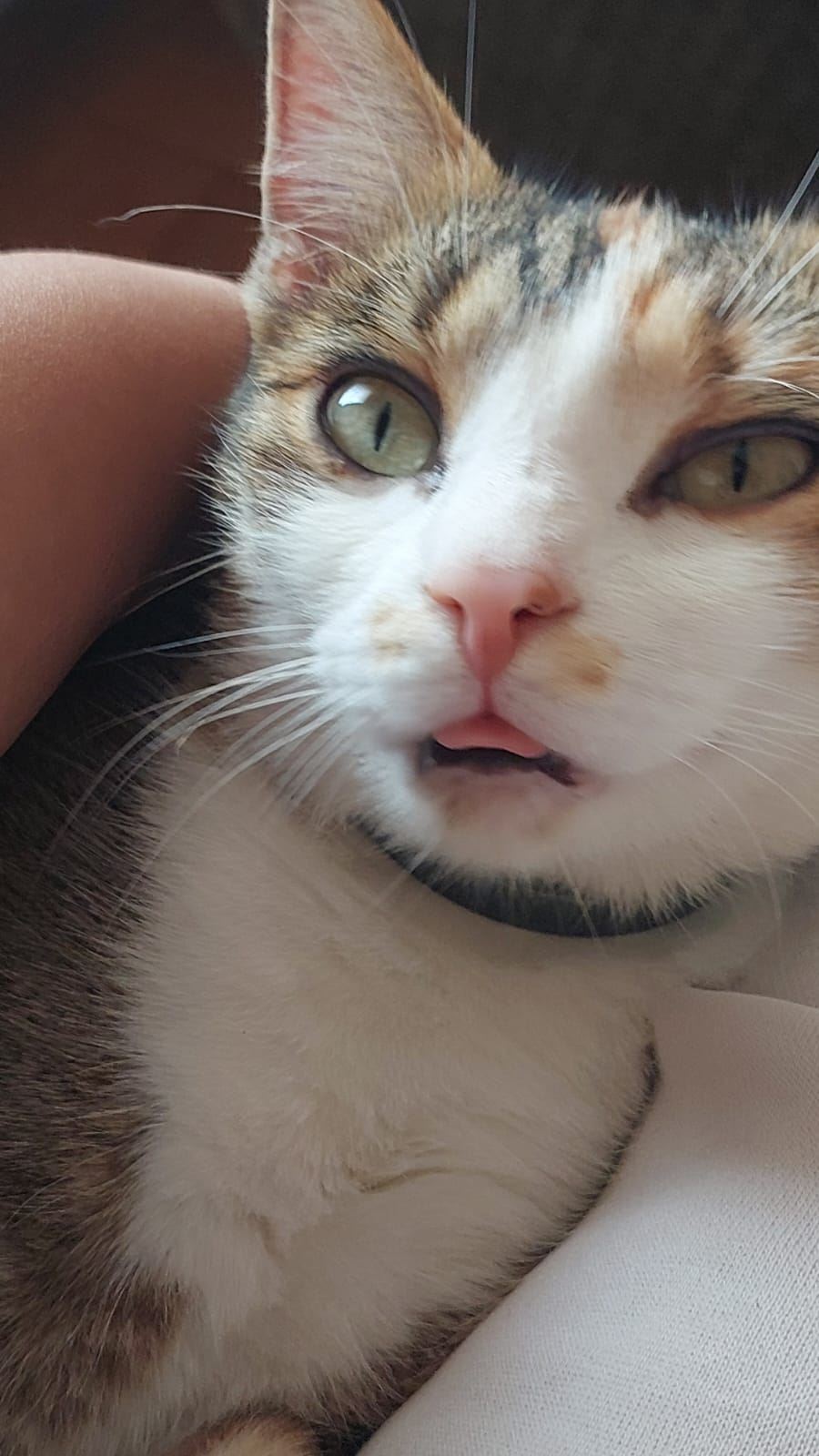 Zalutala več udomljena maca ,stara oko 1-3 god , vec mjesec dana boravi u našem dvoristu.