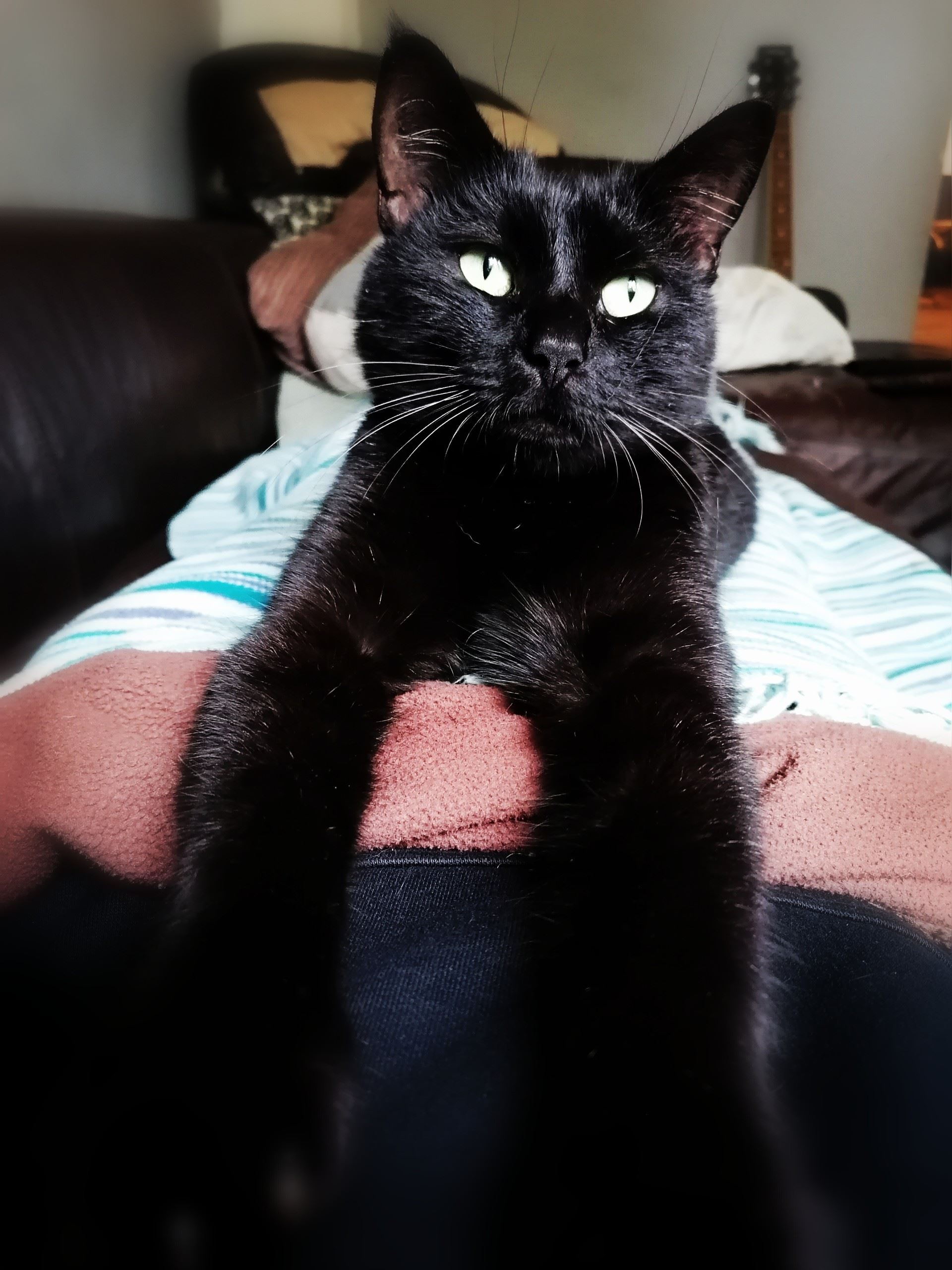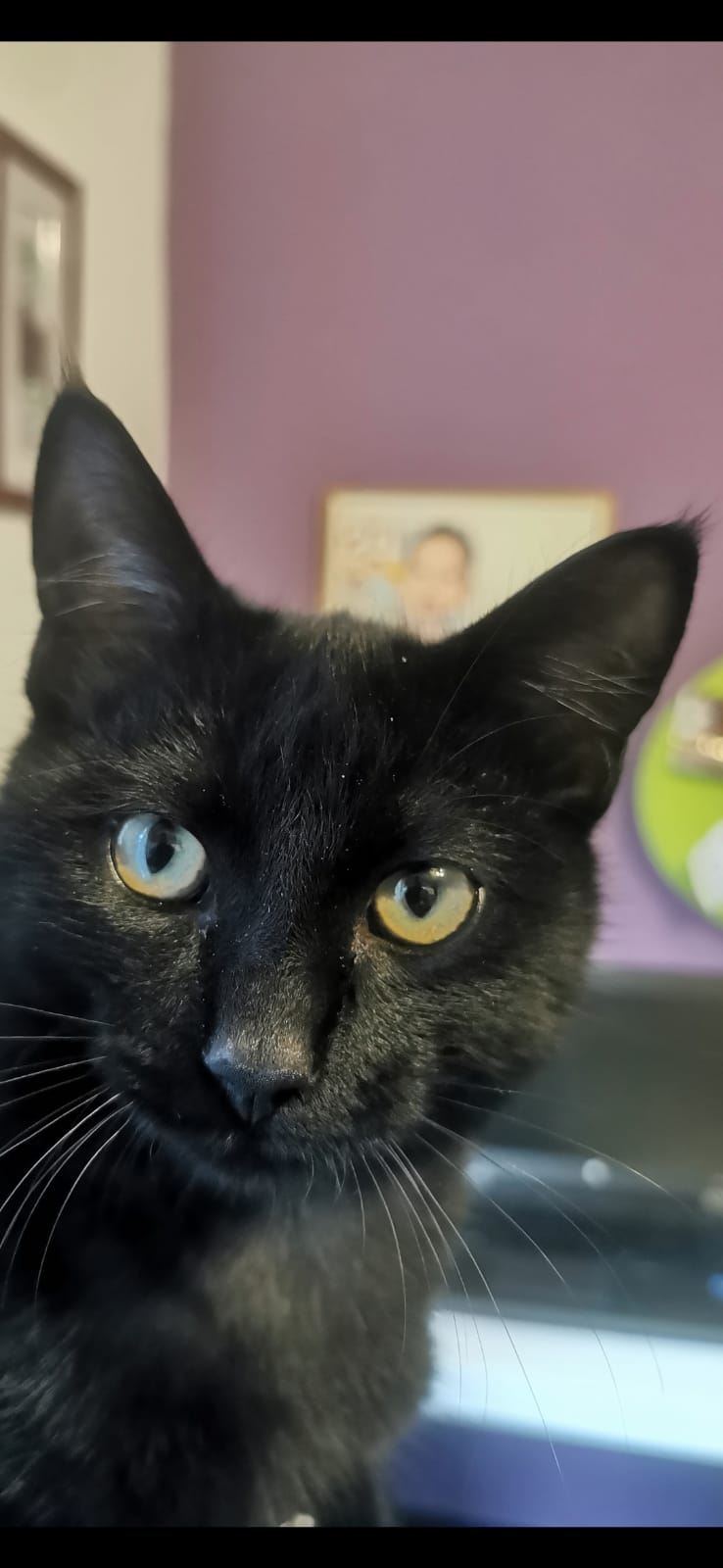 Mačaj je inače posve crn (možda ima par sijedih), te sjajne dlake. Lijep je, zdrav, krupan, spretan, voli se penjati po krovovima. Dobar je lovac, no s ljudima umiljat i odaziva se na ime.