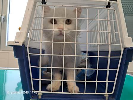 Info centar - detalji pronađene životinje Vrsta Mačka Pasmina Križanka Spol Ž Boja bijela Dlaka kratka Starost 3 g. – 5 g. Broj čipa 191100002387566 Ime BIJELA Datum prijave 6.12.2025. Područje Vrbik Identifikator 71523 Podijeli na Facebooku Galerija slika natrag