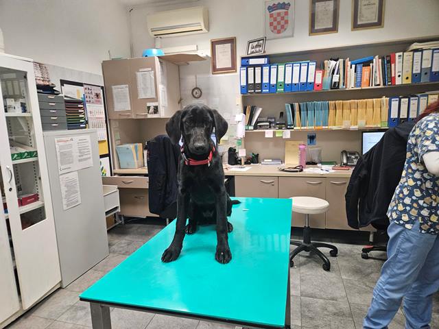 Mladi pas crne boje. Izgledom križanac labradora ili sl. Pronađen na podrucju Buzina.