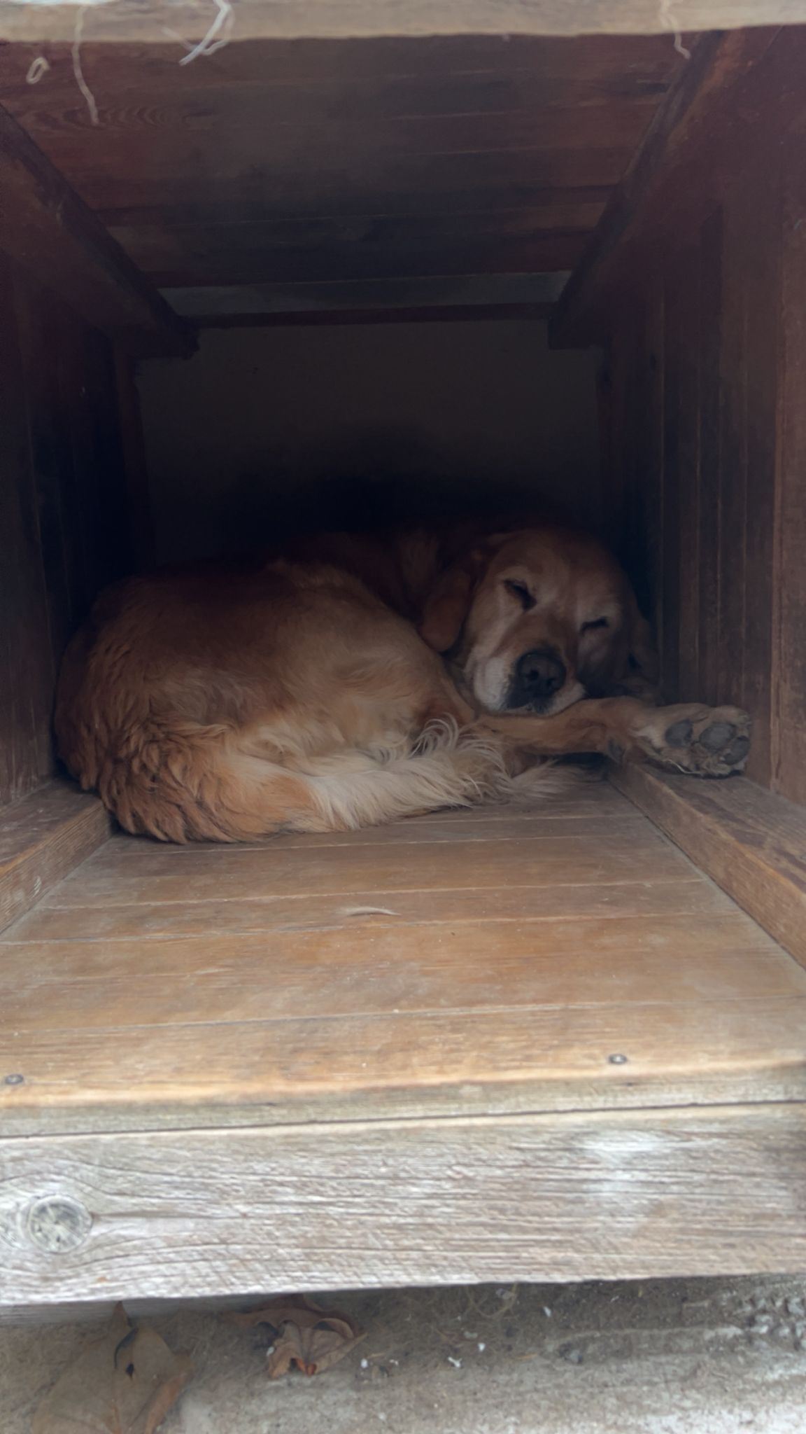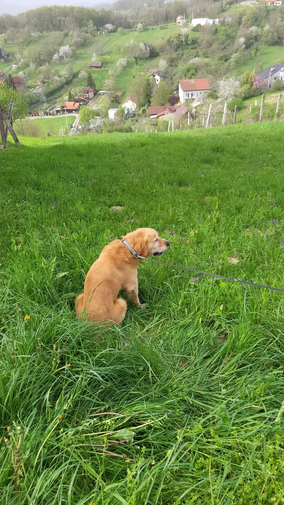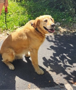 Pas je velike građe, visine oko 60cm, težine oko 40kg, ima plavu ogrlicu. Vjerojatno je uplašen i nepovjerljiv prema nepoznatim ljudima.