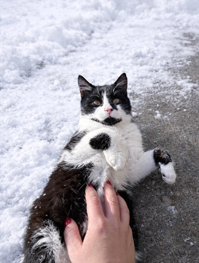 Pronaden jako pitomi i mazni nekastrirani mladi mačak iza zgrada na Darwinovoj. Dolazi navečer jesti prilikom hranjenja lokalnih steriliziranih maca.
