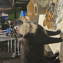 Mačka ima rozu ogrlicu sa ugraviranim imenom.