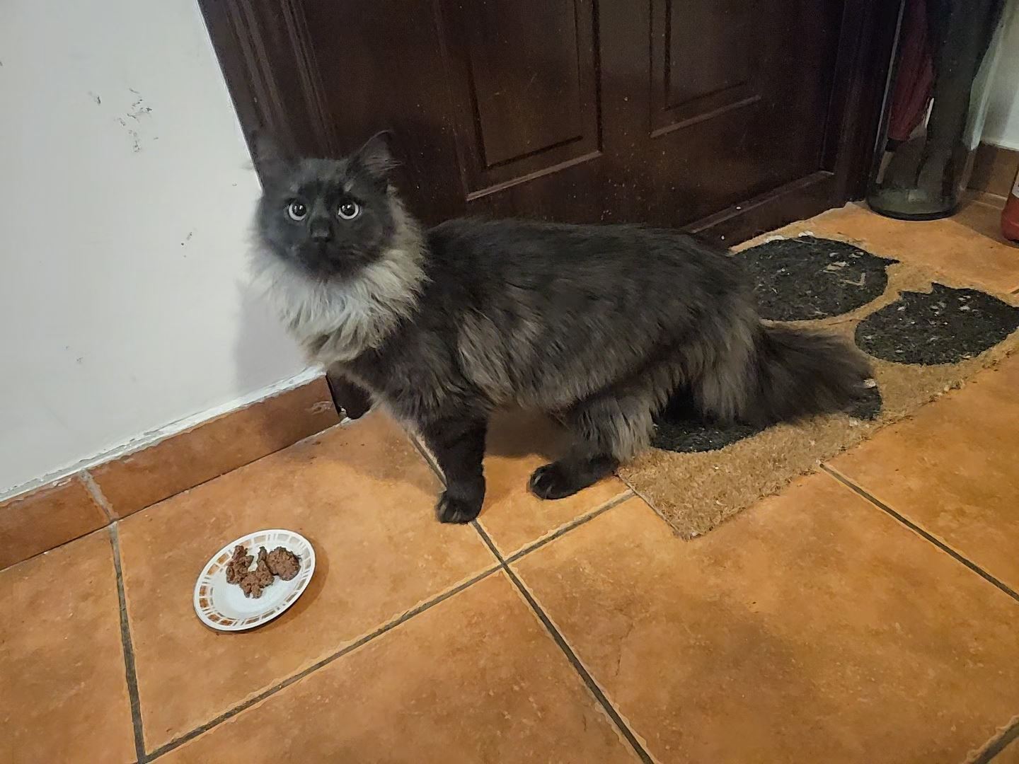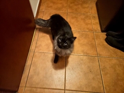 U nedjelju ujutro , 1.2.2026. Maca nam je ušla u dvorište i potom u kuću, izgleda njegovano i jako je pitoma, ne čini se ulična,. Duge dlake je, crne boje i ima sivi ,,šal,,. Izgleda rasno, možda main coon ili norveska sumska. Koliko smo uspjeli napipati nema čip.