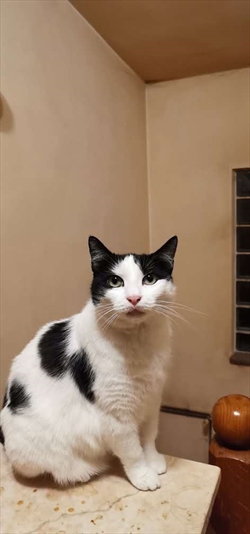 Info centar - detalji izgubljene životinje Vrsta Mačka Pasmina Domaća Spol N Boja dvobojna(bijela+druga boja) Dlaka kratka Starost preko 7 g. Ime Točka Datum prijave 16.3.2026. Područje Bukvac, Maksimir Identifikator 72361 Opis Pitoma, kućna mačka, Podijeli na Facebooku Galerija slika natrag