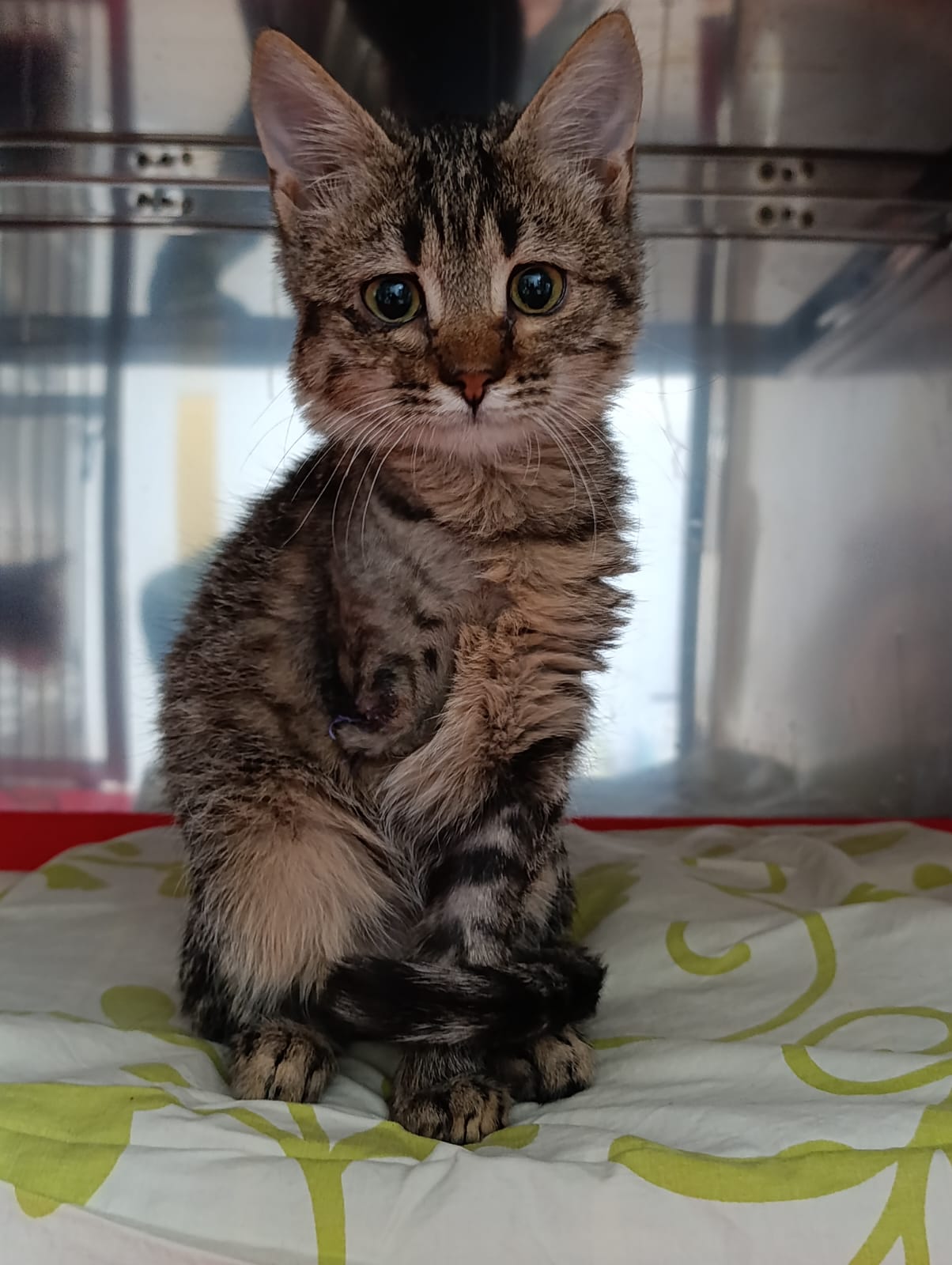 Osobna iskaznica Ime Pruga Vrsta Mačka Pasmina domaća mačka Starost Mačić Na čuvanju kod privremenih udomitelja, trenutno nije u skloništu. Detaljnije informacije možete dobiti na tel: 01 2008 354. Datum dolaska 17.7.2025. Datum rođenja 5.6.2025. Spol M Podijeli na Facebooku Galerija slika natrag
