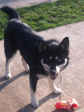 Moj pas ima predivne oči po kojima ce se prepoznati odmah.. jedno smede, drugo plavo. Mjesanac je malamuta.. ima plavu ogrlicu i uplasen je.. odaziva se na ime Bu ili buki ako mu se tepa..