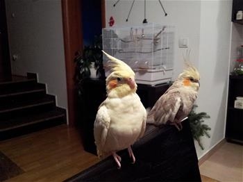 Papige nimfe, ženka imena Pupica sive boje i mužjak imena Pupi žute boje.