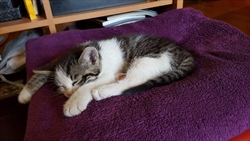 Mačić je privremeno smješten kod mene, ali kako ja imam peseka nikako nije trajno rješenje, zato molim za pomoć.