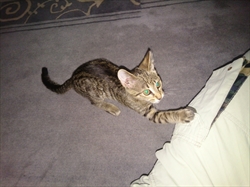 Mlada mačka stara oko 3-4 mjeseca traži novi dom. Maca je siva tigrica, vrlo umiljata i obožava se maziti, zaigrana, voli ljude, naučila je na pijesak u manje od 1 dana.