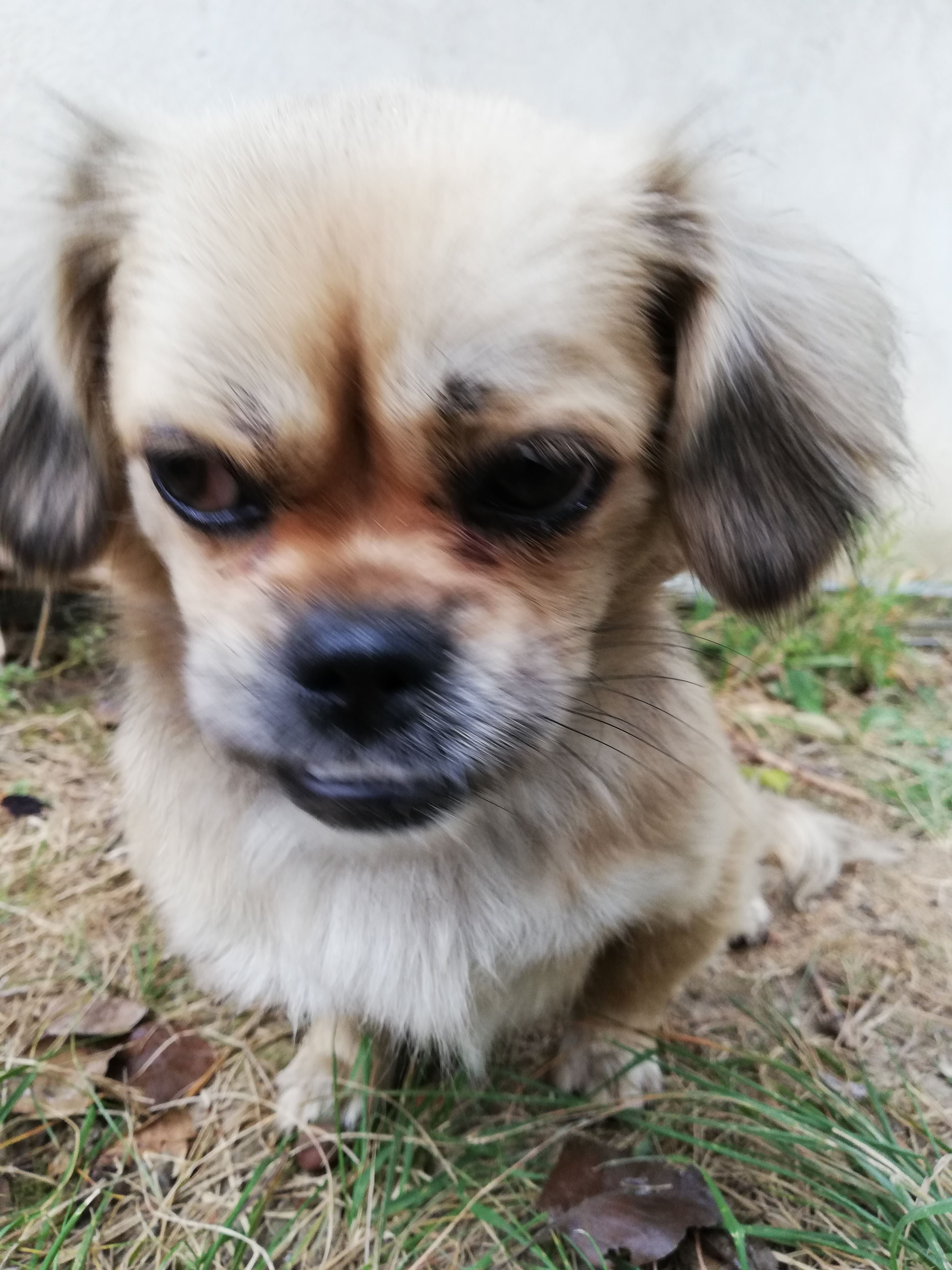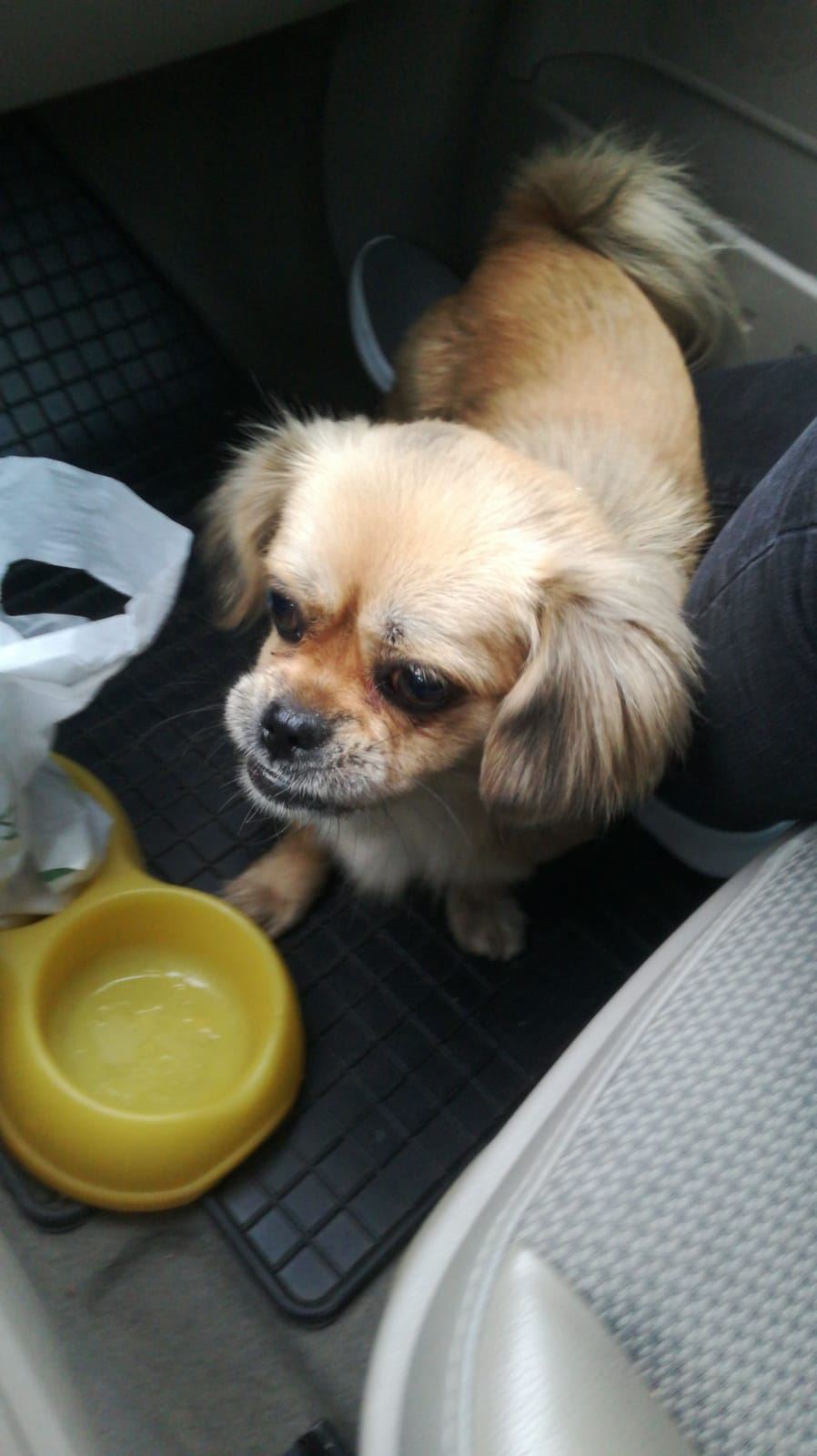 Kujica, u tipu tibetskog spanijela, mlada, privrzena ljudima. Ima narancasto crvenu ogrlicu. Nije cipirana.