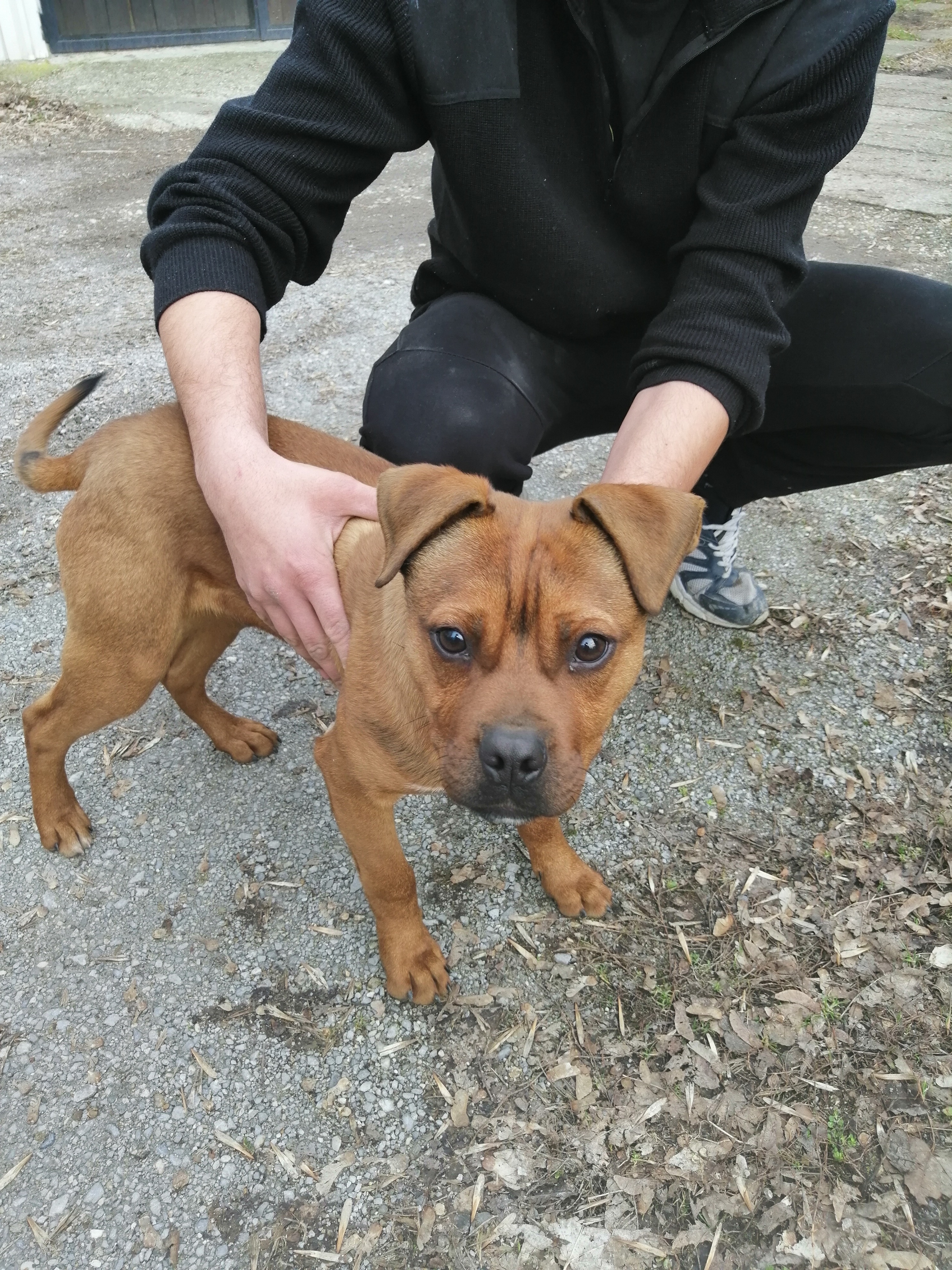 pronađen pas na području Resnika, smeđi mladi mužjak u tipu stafforda. Ima preklopljene uši i sabljasti rep. Kratku, oštru dlaku.