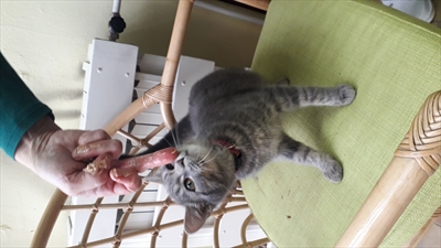 Info centar - detalji pronađene životinje Vrsta Mačka Pasmina Domaća Spol Ž Boja tigrasto siva Dlaka kratka Starost 7 mj. – 1 g. Datum prijave 11.2.2019. Područje ZAGREB Identifikator 48681 Opis Pronađena mačka u dječjem vrtiću Trnsko Podijeli na Facebooku Galerija slika natrag
