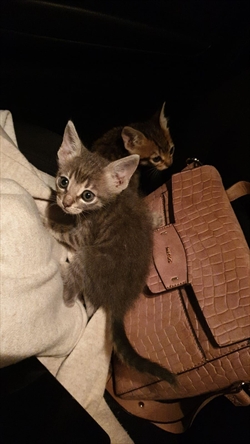 Info centar - detalji pronađene životinje Vrsta Mačka Pasmina Domaća Spol N Boja tigrasta Dlaka kratka Starost 2 mj. – 7 mj. Područje Zagreb Identifikator 49873 Opis Pronađena 2 mala mačića nasred ceste gdje nema kuća, starosna dob cca 1 mj Podijeli na Facebooku Galerija slika natrag