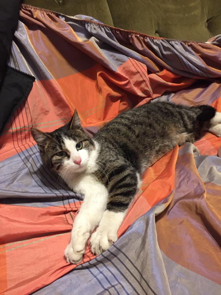 - Pronađen muški malo veći mačić, bijelo-tigrasti. Pristojan, naviknut na pse,