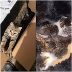 U grmu uz potok Črnomerec pronađena je mlada mačka s 4 mačića stara oko 2 tjedna. Privremeno smješteni.