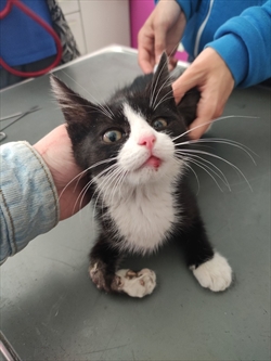 Pronađena pitoma mačka stara oko 3 mjeseca, sa starom povredom šape, u kojoj više nema osjeta. Privremeno smještena.
