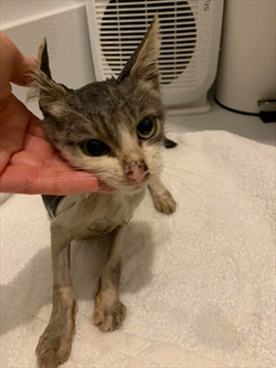 Pronađen vrlo mršav, bolestan mačić od jedva 5 mjeseci. Na liječenju i na skrbi Prave šape pod imenom Slim Shady.