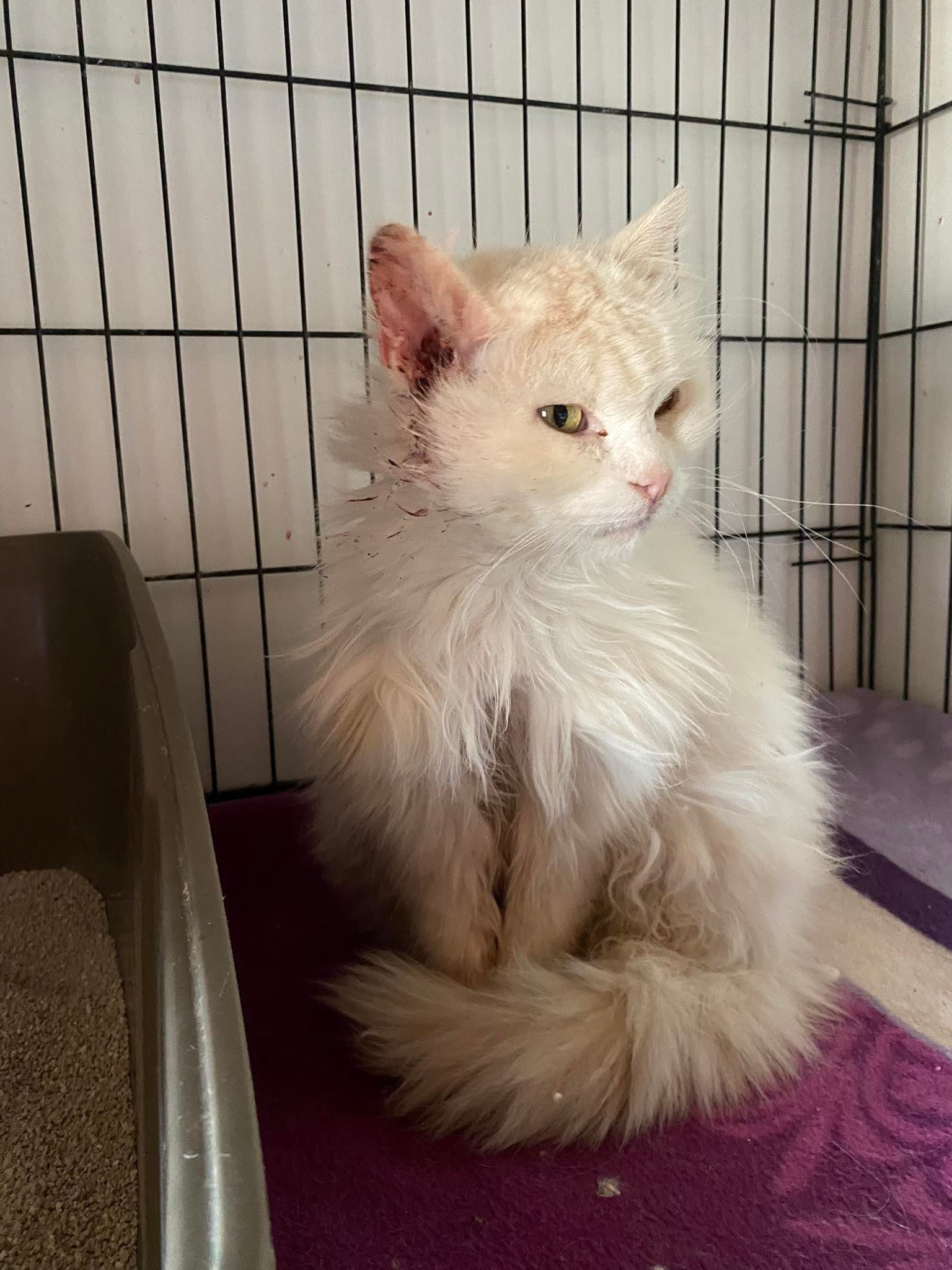 Mačka je pitoma i ima nekakvu ranu u desnom uhu. trenutno je na skrbi i liječenju udruge sos cat