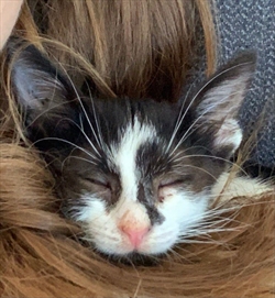 Mačić je pronađen na području Vodica, odvela sam ju veterinaru gdje je dobila antibiotik, antiparazitik i prvo cijepivo. Vratila sam se u Zagreb te ju zbog roditelja ne mogu zadržati.