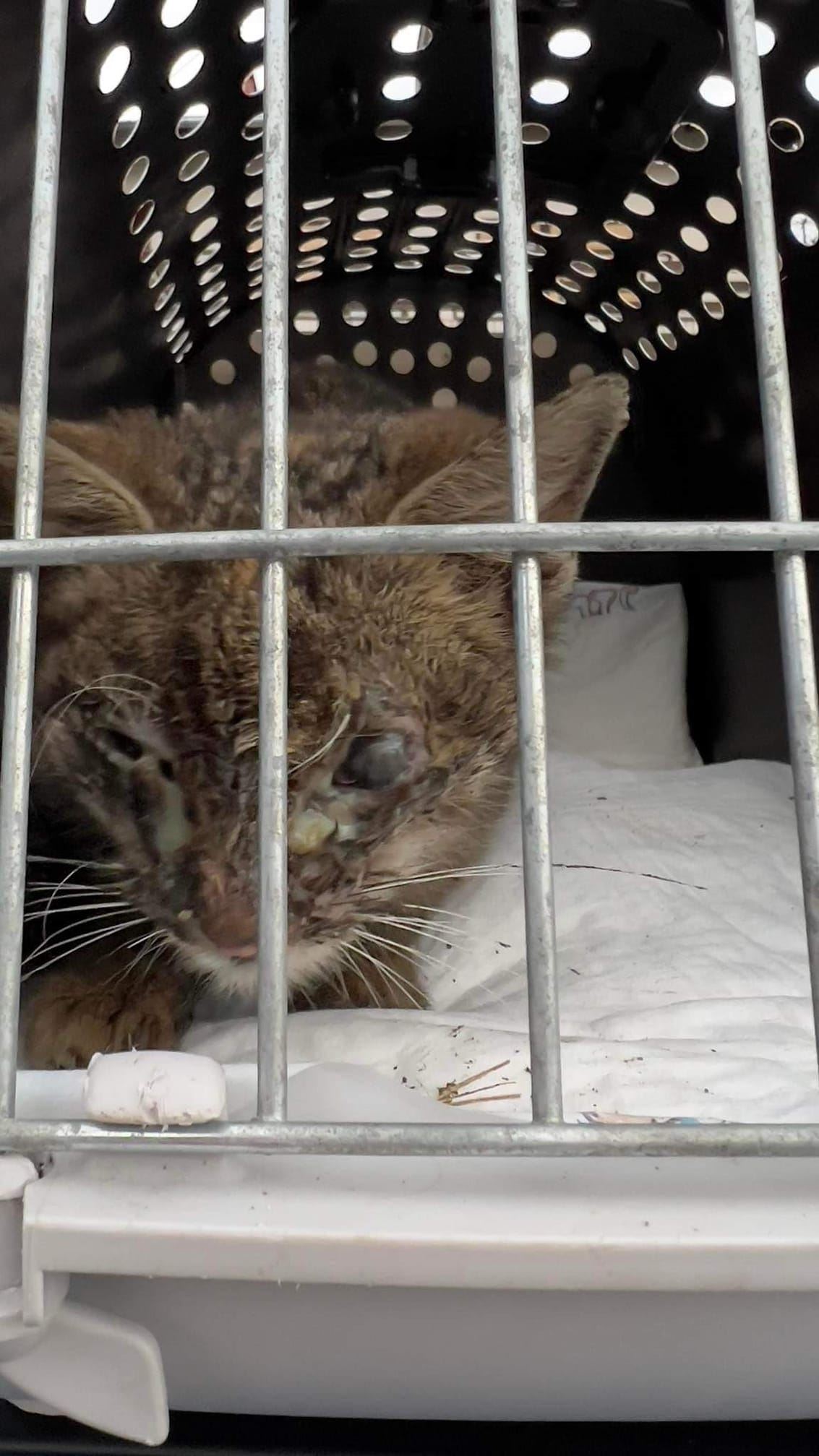 Pronađena teško bolesna mačka, mršava i u teškoj respiratornoj infekciji. Na liječenju.