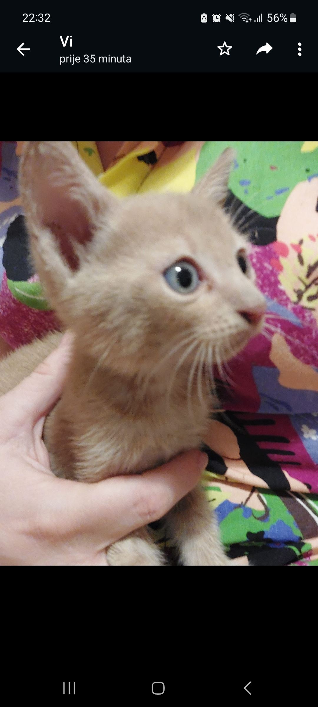 Info centar - detalji pronađene životinje Vrsta Mačka Pasmina Domaća Spol N Boja krem Dlaka kratka Datum prijave 7.6.2023. Područje Črnomerec Identifikator 63880 Opis Pronašli smo bebu mače kojd je skoro pogazio auto. Podijeli na Facebooku Galerija slika natrag
