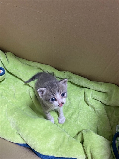 Veterinar kaže da je stara 3 tjedna. jako je mala i ne može sama jesti, ali fizički je dobro pa ju nisu uzeli liječiti. Nađena ispod haube, moguće da se vozila jako dugo unutra.