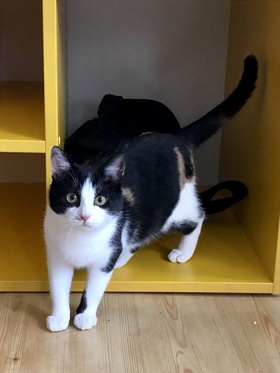 Maca je trobojna, s bijelim na vrhu repa, prevladava crna i bijela boja, na nekim mjestima ima žutoga, vrlo pitoma, sitnije je građe, starosti dvije godine.