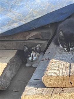 Kod susjede su se, prije nekoliko dana, pojavila ova 4 mačića, oko dva – tri mjeseca stari. Tamo nisu poželjni i nemaju hrane niti vode. Sami si ne mogu pronaći hranu jer ih njihov lovni terijer uporno pokušava uloviti, pa se skrivaju među daskama. Ja im ujutro ostavim malo hrane, ali najviše bih volio kada bi im pronašli dobar dom. Imaju malo dulju dlaku, ali ne znam da li će biti dugodlaki ili to samo tako izgleda.