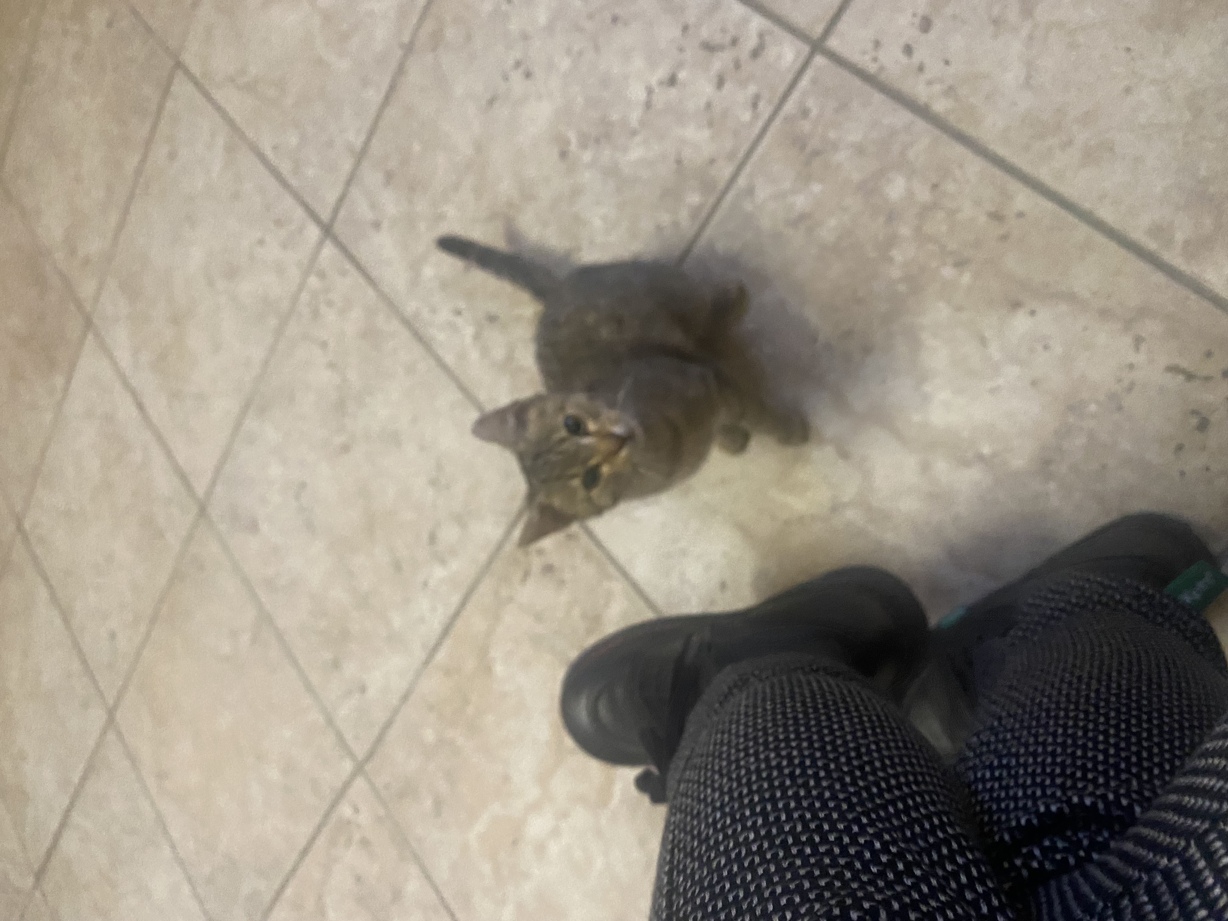 Maca drži glavicu u starnu i stalno češe po uhu. Na repeku ima kvrgicu kao zarasla ozljeda. Brkovi skračeni i kao da su uništeni toplinom. Gladna i jako željna dodira.