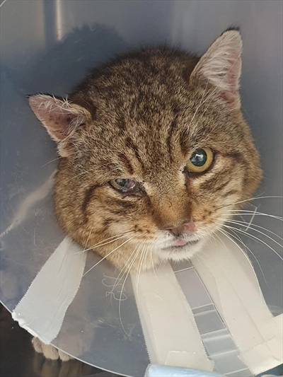 Mačak je ulični, živi u kvartu Trsje i nema vlasnika. Divlji je. Često dolazi u naše dvorište gdje ga hranimo. 11.2.2024. je došao s očitim zdravstvenim problemima (izrazito otežano kretanje, glava zakrenuta na jednu stranu) nakon čega smo ga odveli na pregled na Veterinarski fakultet na kojem mu se pruža pomoć.