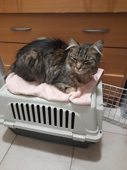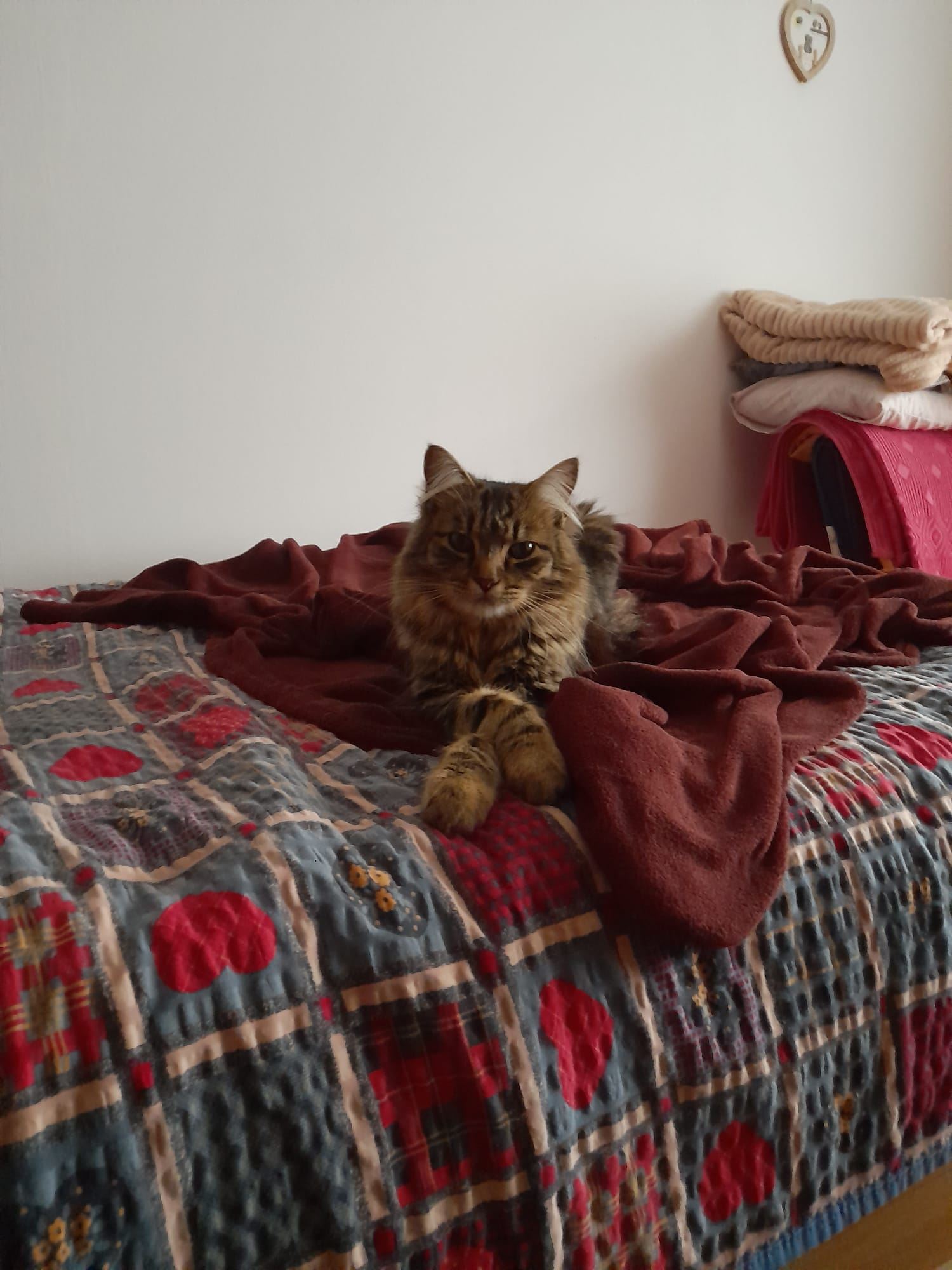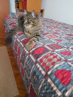 Maca je pitoma, bila je kod veterinara, ima ogrlicu protiv buha na sebi. Nema čip