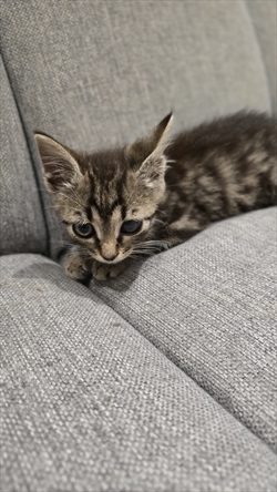 U četvrtak 4.7. nam je u vet ambulanti Šegota ostavljen mali mačić. Stara je otprilike 6-7 tjedana.