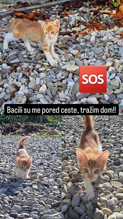 Info centar - detalji pronađene životinje Vrsta Mačka Pasmina Domaća Spol N Boja žuto bijela Starost 2 mj. – 7 mj. Datum prijave 6.10.2024. Područje Zagreb Identifikator 67801 Opis Mače bačeno na cestu traži dom! Podijeli na Facebooku Galerija slika natrag