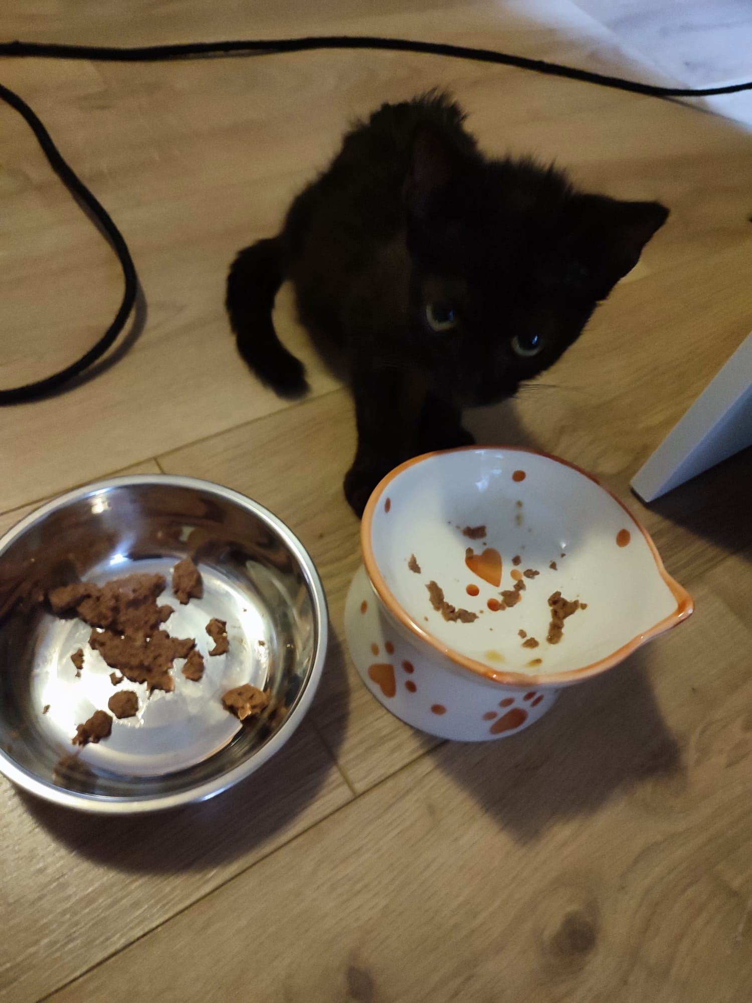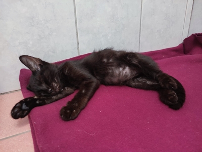 Uhvatila sam mačića 2.9., ponedjeljak, s adrese Radnička 182. Tamo su ostala još minimalno 3 mačića iste veličine, vjerojatno iz istog legla. U utorak je kod veterinara dobio ampulu protiv vanjskih i unutarnjih nametnika. Od početka lijepo jede, ide na zahod i spava, ali ima proljev. S vremenom mi se daje sve više maziti. Danas ujutro, nedjelja 8.9., nalazim ga nepomičnog, plitkog disanja, odlazimo u ambulantu Buba, tamo obavljaju pretrage, dobivaju pozitivno na parvo virus. Šalju nas na veterinsrski fakultet gdje je mačić ostao na liječenju. Ima oko 2.5 mjeseca, muško je, zove se Vanja (Vanjuška).