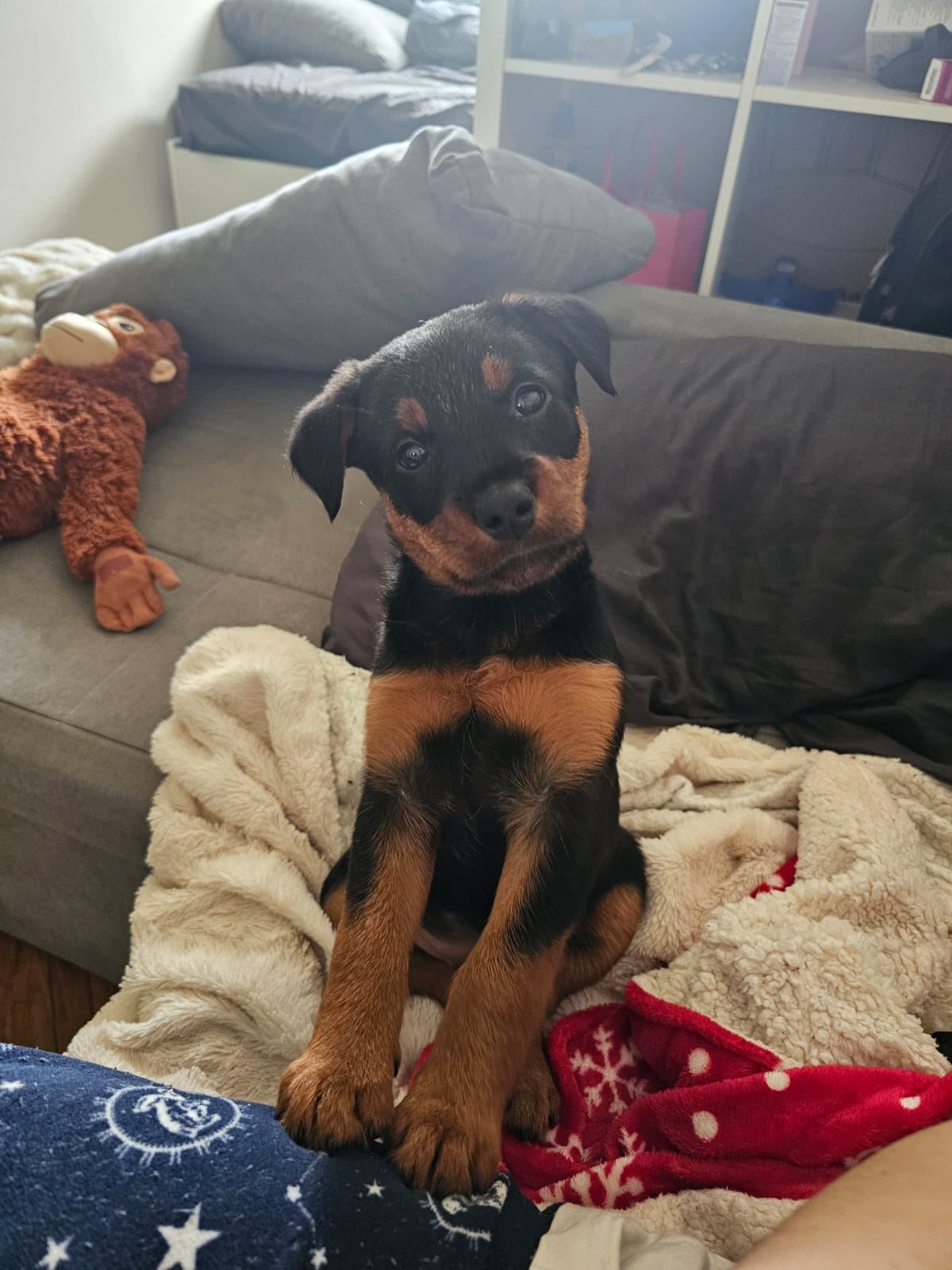 crni plašt sa smeđim paležom, bijela sa crnim mrljama