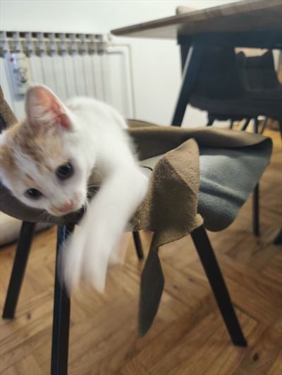 Pronađen muški mačić, žuto bijele boje, plave oči.