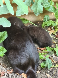 U vrtu u kućici za alat nam je ničija mačka izlegla ili donijela 2 mačića. Prijavili smo mamu mačku ( prijava je 70577) te smo naručili iz Dumovca postavljanje lovke da ju se sterilizira i cijepi, a i pogledaju rane na uhu. Također bi prijavili i mačiće (ne znamo kojeg su spola) da ih uhvatimo i cijepimo i stavimo im ampule. Mačići su divlji. Pokušavamo ih pripitomiti, ali bježe. Njih bi nakon što se cijepe oglasili da im pronađemo dom.