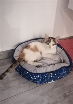 Nađena mala mačkica u ulici Tekijska u Sesvetskim Selima. Hodala je po dvorištima. Jako čisto izgleda.