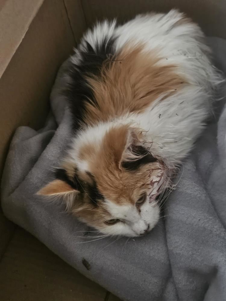 Pronađena dezorijentirana, ozlijeđena maca stara do 6 mj na cesti na Vrbiku, trenutno je na stacionarnom liječenju