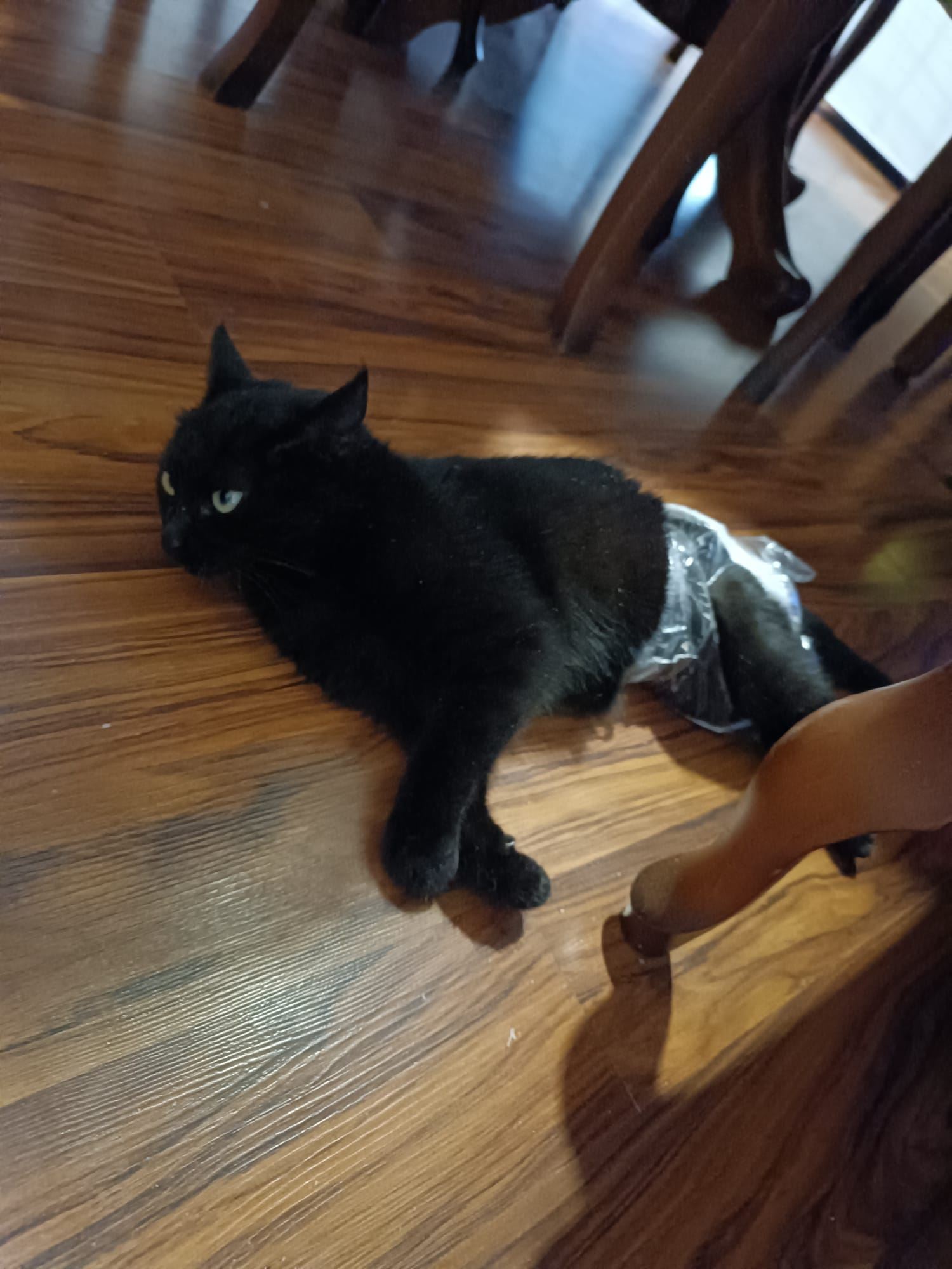Navečer nađena na parkingu kod Konzuma, uzeli smo ju doma, ujutro smo primjetili da je crijevo malo vani i da rep visi.