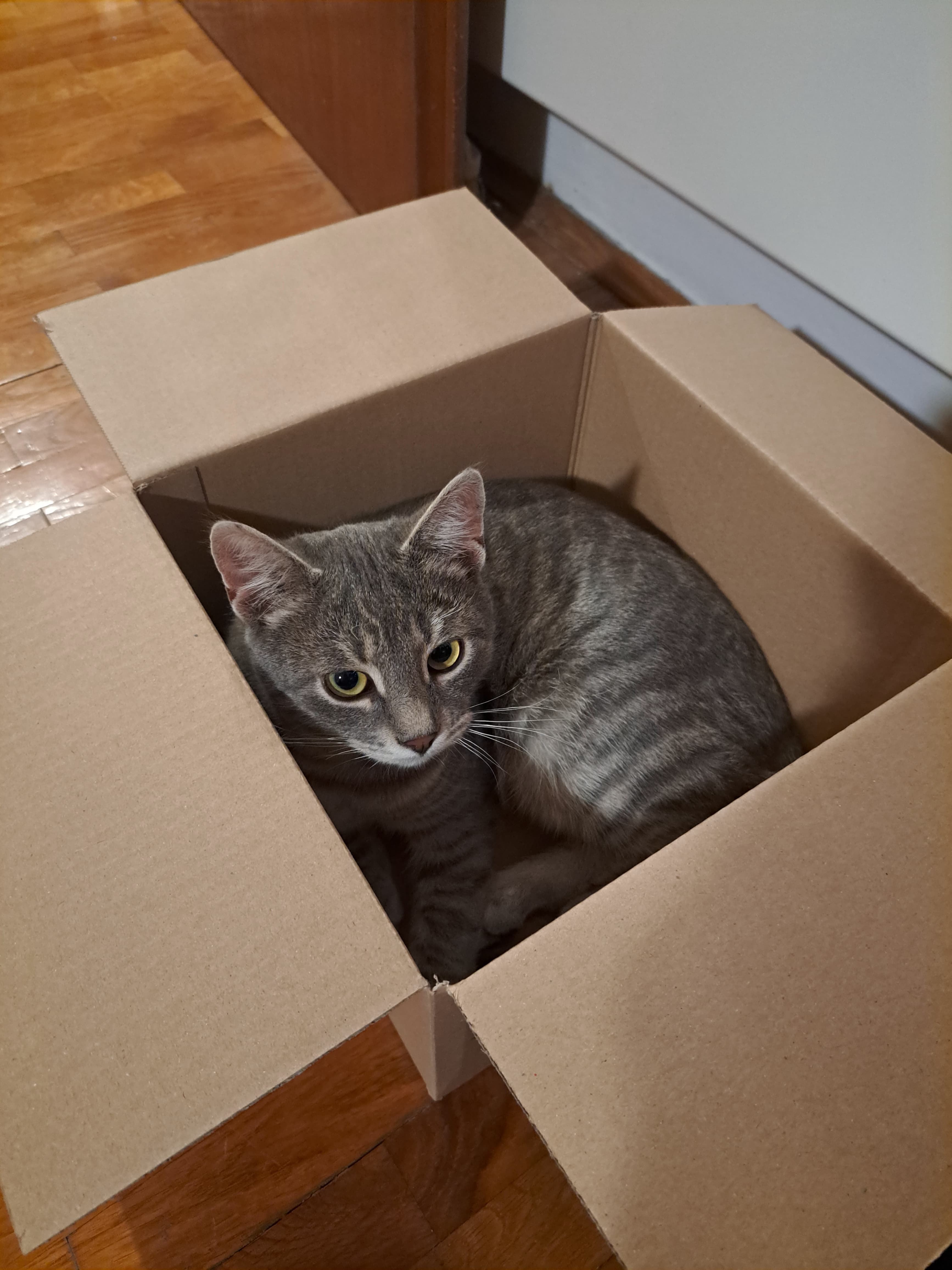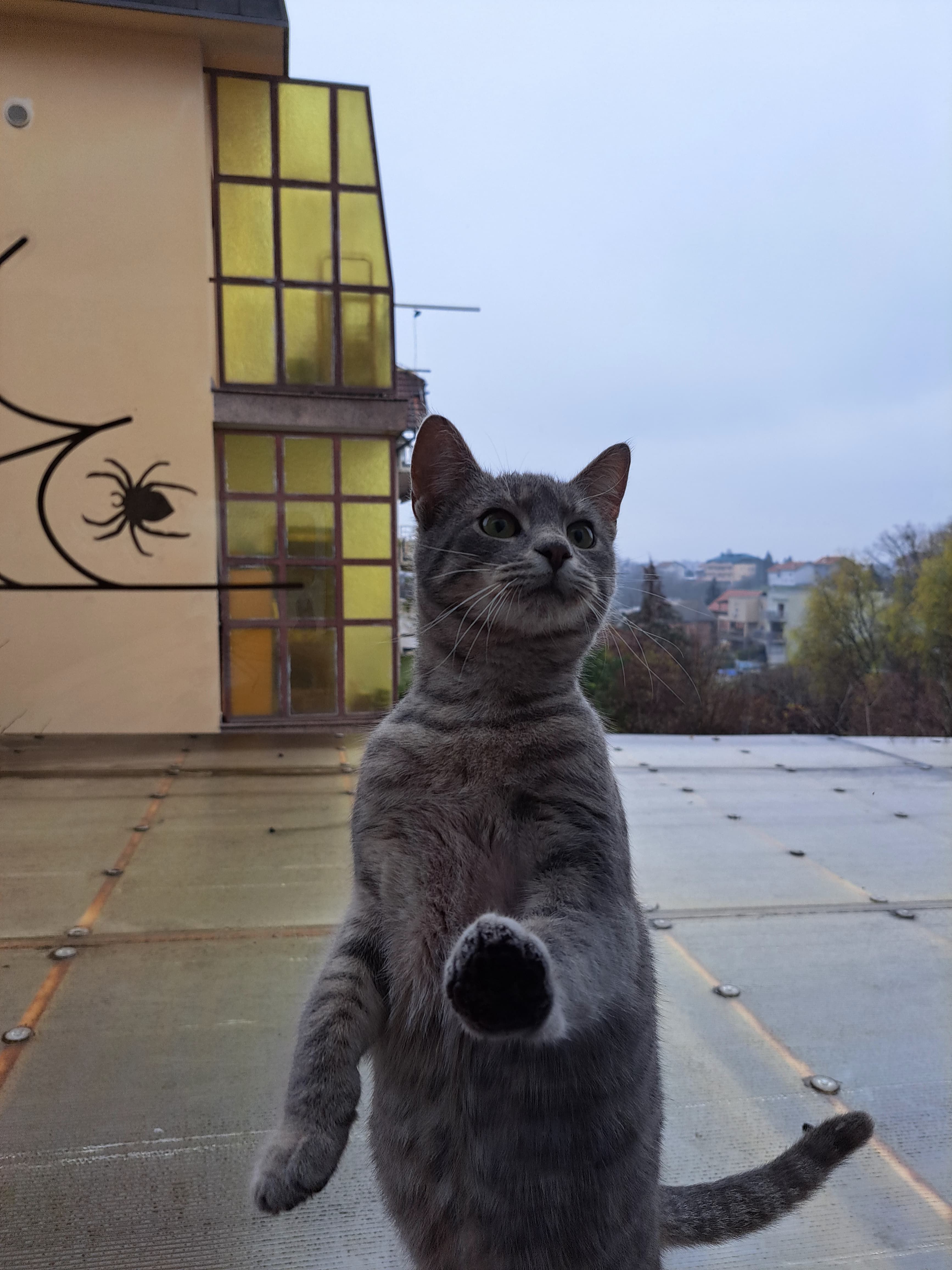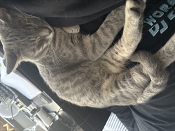 Info centar - detalji pronađene životinje Vrsta Mačka Spol M Boja Dlaka kratka Starost 7 mj. – 1 g. Datum prijave 14.11.2025. Područje Remete Identifikator 71633 Opis Dolutao nam je lijepi sivi mačak do stana, primili smo ga za sad :) Podijeli na Facebooku Galerija slika natrag