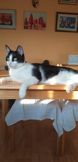 Info centar - detalji pronađene životinje Vrsta Mačka Pasmina Križanka Spol M Boja crno bijela Dlaka kratka Starost 1 g. – 3 g. Datum prijave 9.7.2025. Identifikator 71849 Opis Dankovecka Podijeli na Facebooku Galerija slika natrag