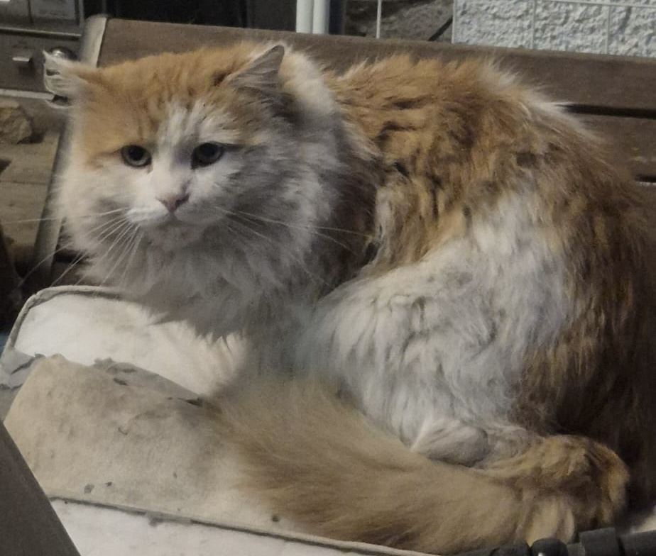 Dolutala žuto bijela maca. Preplašena, preko dana luta okolnim ulicama ali po nići se skloni. u naše dvorište.