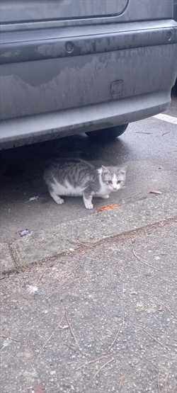 Info centar - detalji pronađene životinje Vrsta Mačka Pasmina Domaća Spol M Boja sivo bijela Dlaka kratka Starost 2 mj. – 7 mj. Datum prijave 14.2.2026. Područje Gajnice Identifikator 72132 Opis pronađen u ulici Hermana Dalmatina Podijeli na Facebooku Galerija slika natrag