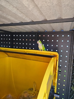 Danas, je uočena ziva papiga u boksu za smece, na adresi Jablanska 82, Zagreb, Rudeš.