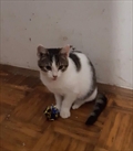 Po njegovom ponašanju se vidi da je bio u kući/stanu, dobro je uhranjen i uredan, ali kako dolaze hladni dani ne znam što će biti s njim.Za sada ga hranim zajedno sa još 2 nezbrinute mlade mice. Mačak ima bijeli čuperak na vratu i još jedan na donjem dijelu trbuha.